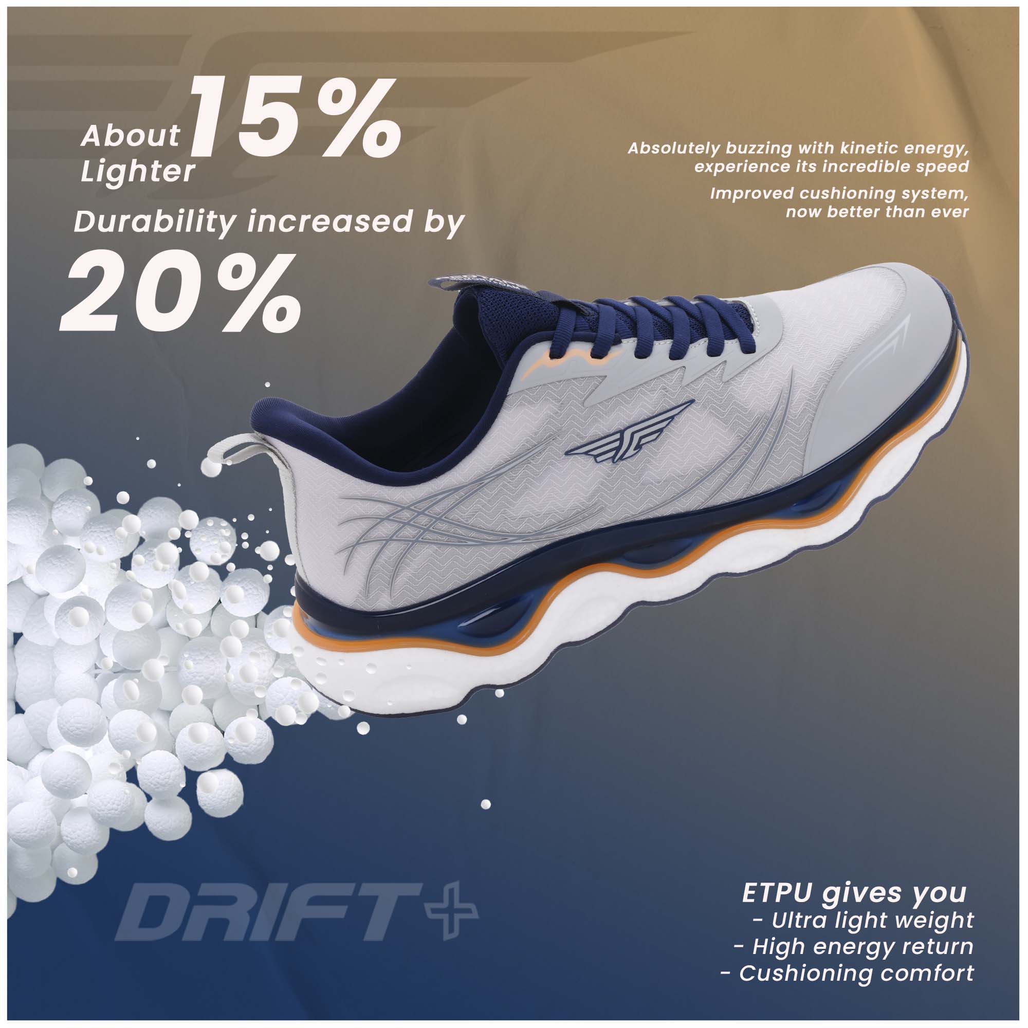 Material: Sole - ETPU + TPU + TPR | Upper - Mesh | Insole - Drift+ Memory Foam