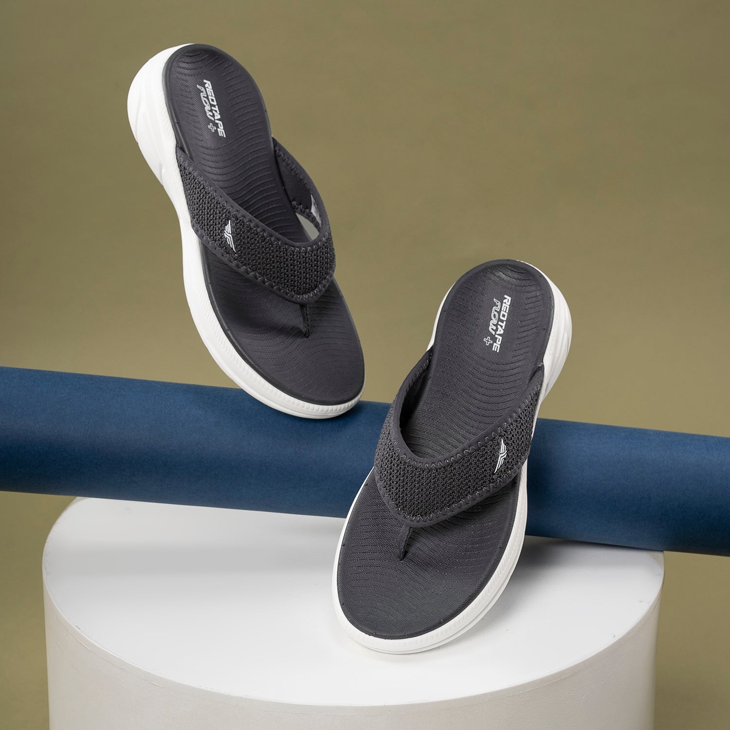 Step into everyday ease with Red Tape Black Sport Sandals for Women - designed for effortless comfort and breathable style. Crafted with a soft knitted textile upper and fabric lining, these sliders provide a flexible, snug fit for all-day wear. The lightweight EVA sole offers cushioning and grip, while the slip-on thong design ensures convenience and relaxed movement - perfect for casual outings, lounging, or summer strolls.