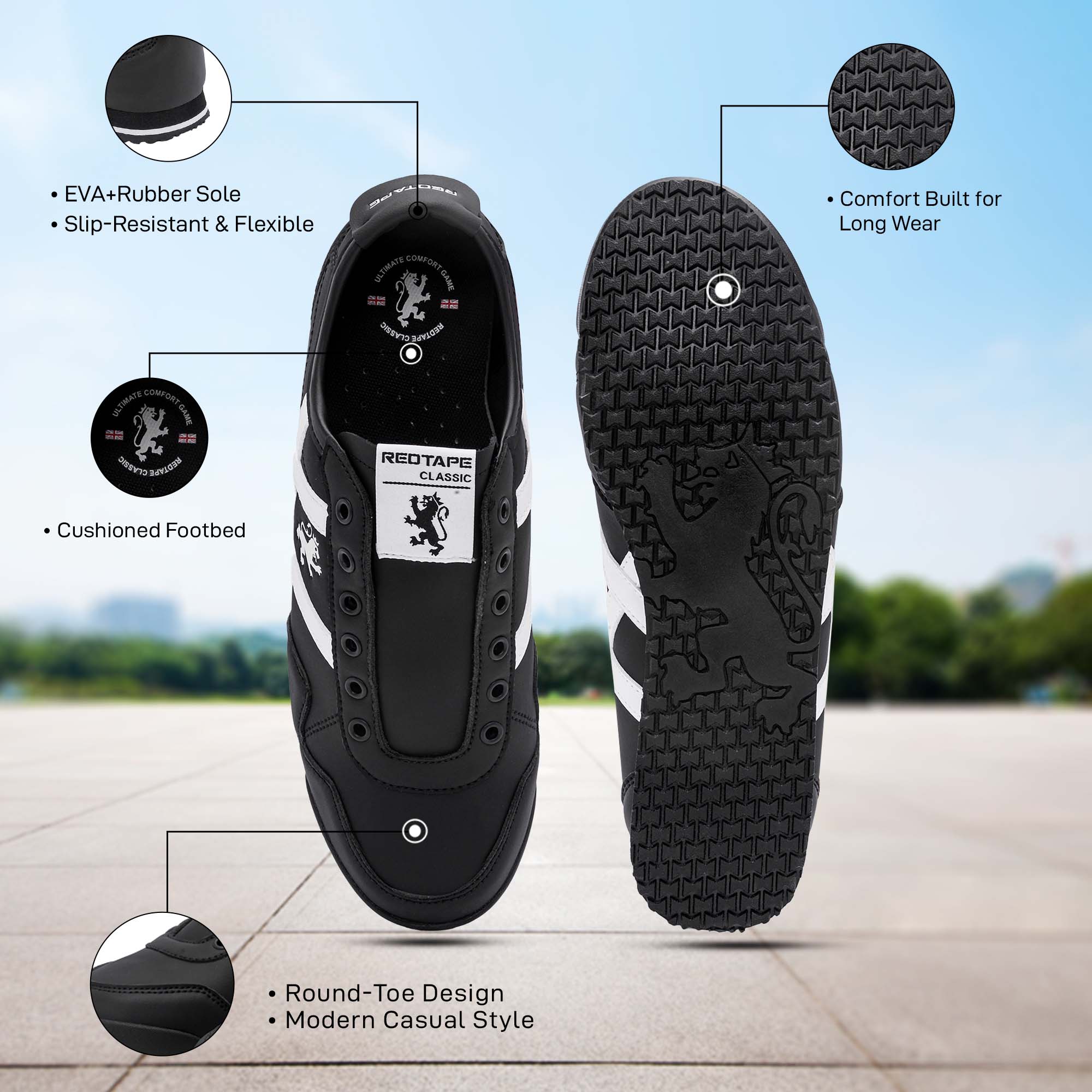 Jumpstart your style with Red Tape's Black Men's Casual Sneakers! These shoes have a cushioned EVA+Rubber Sole to ensure that your feet stay comfortable all day long. The PU Upper gives you extra support for your steps so you can walk with confidence. The Round Toe shape adds a fashionable touch, making these shoes the trendiest of them all!