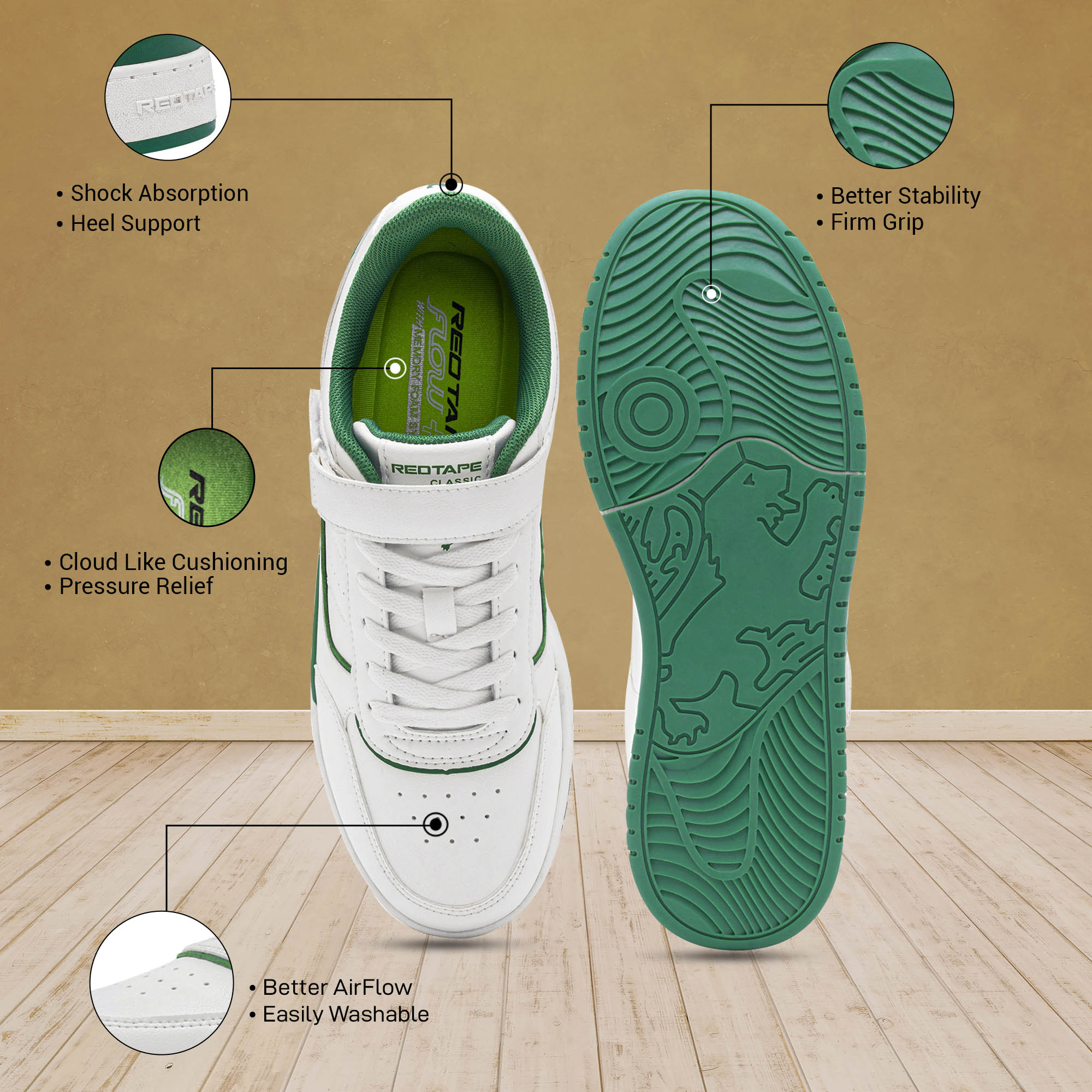 Get Comfortable and Stylish all at once with our White and Green Sneakers for Men brought to you by Red Tape. TPR + TPU Bed Sole gives you All Day Comfort. The PU Upper gives a Casual Chic Look. The Casual Look gets more Enhanced with its Round Shape Toe.