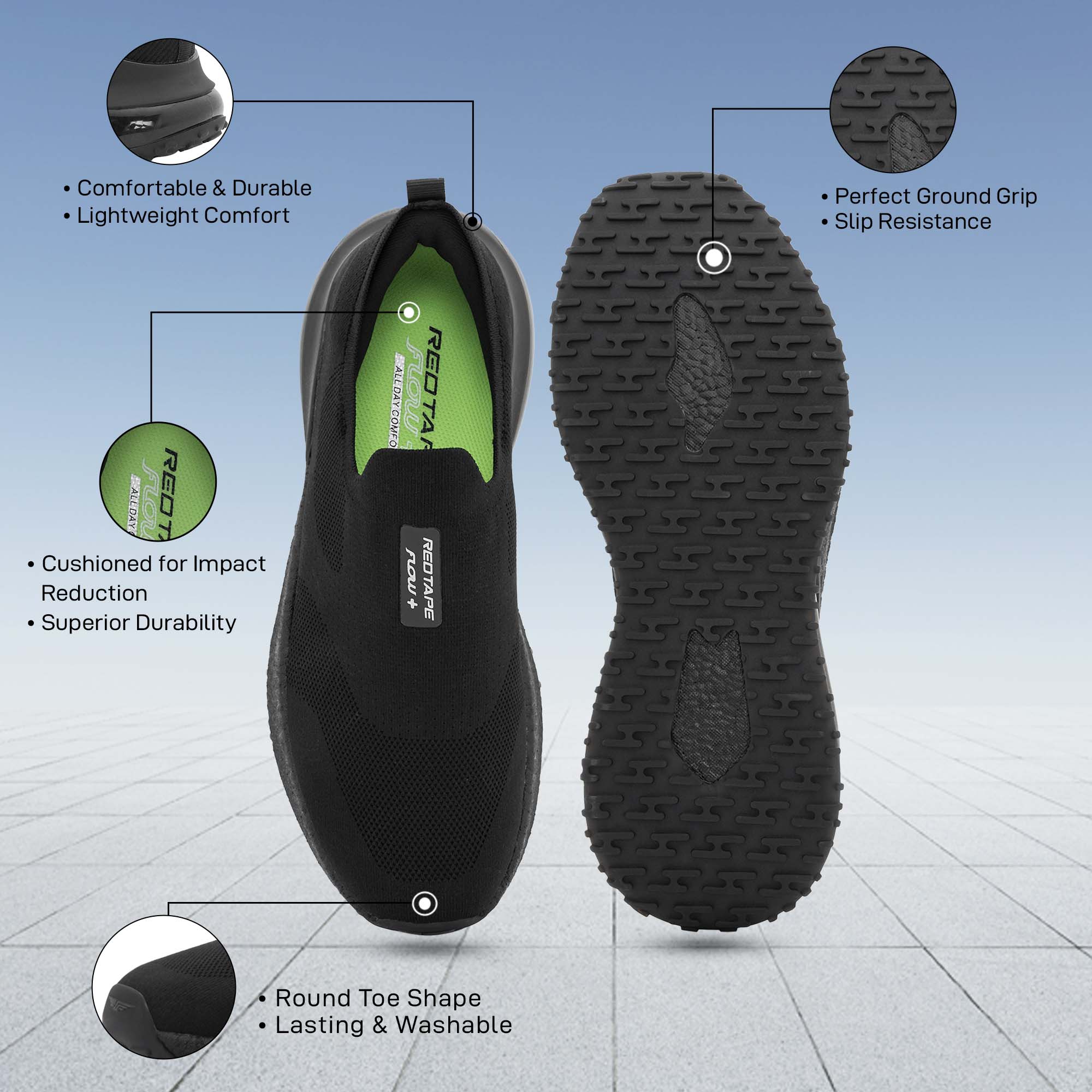Step into a new level of comfort with Red Tape Walking Slip-On Shoes for Men, crafted for those who value style, ease, and performance. Featuring a premium knitted textile upper that ensures breathable flexibility and a mesh lining for softness, these shoes are perfect for daily walking or casual wear. The ETPU + TPU sole delivers energy return, cushioning, and superior grip, while the FLOW+ Comfort EVA Footbed enhances underfoot comfort with every step. Designed in a low-cut slip-on style, they offer easy wearability and a secure fit - ideal for your active, on-the-go lifestyle.