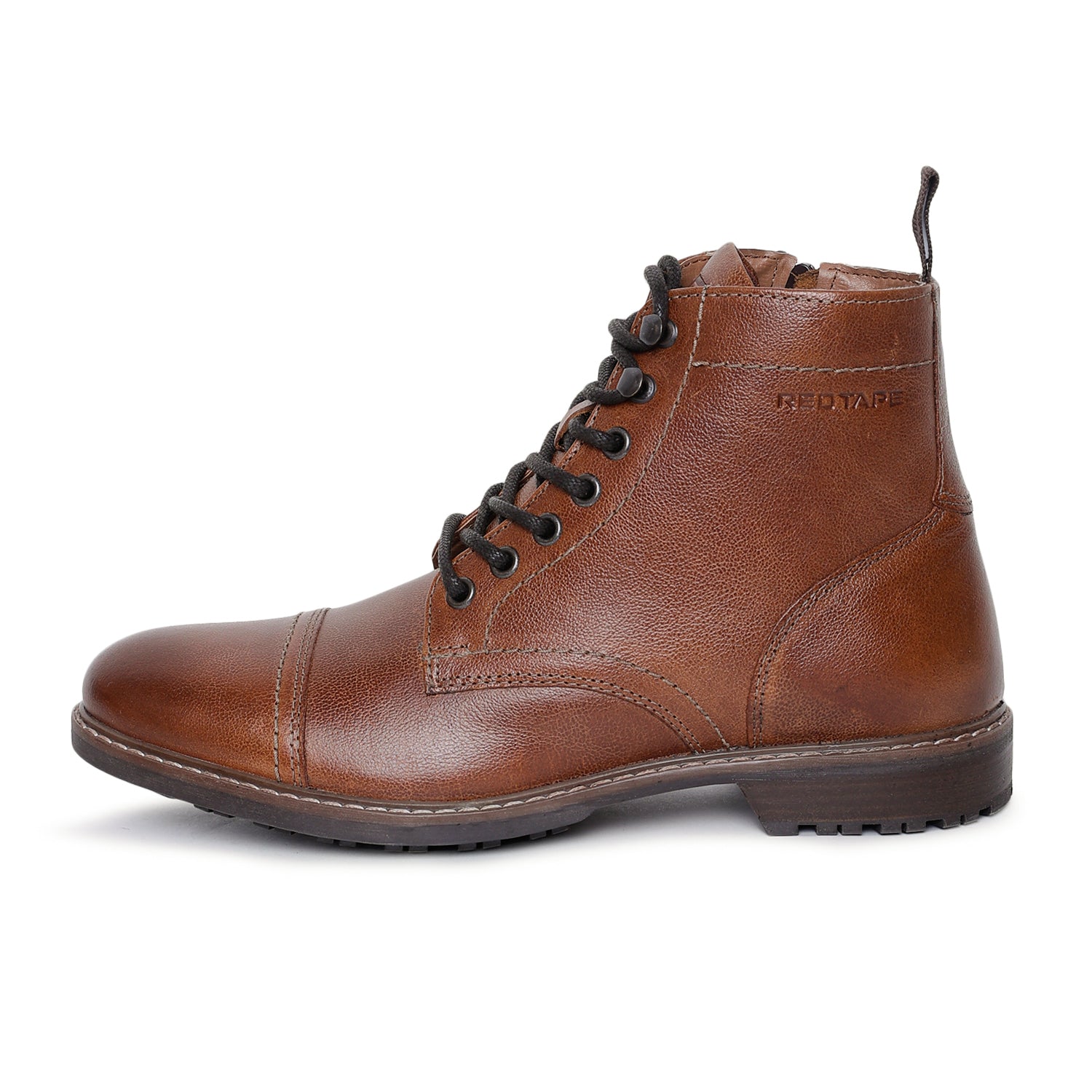Step up your style game with Red Tape boots for men, designed to deliver both comfort and durability. Crafted with a premium leather upper and a slip-resistant TPR sole, these ankle-length boots ensure long-lasting wear and dependable performance. The lace-up closure allows for a secure fit, while the round toe shape adds timeless appeal. Perfect for everyday wear or outdoor adventures, these boots are a versatile addition to your wardrobe. Recognised as some of the best boots for men. These boots for men are trending Chelsea boots for men on sale collections.