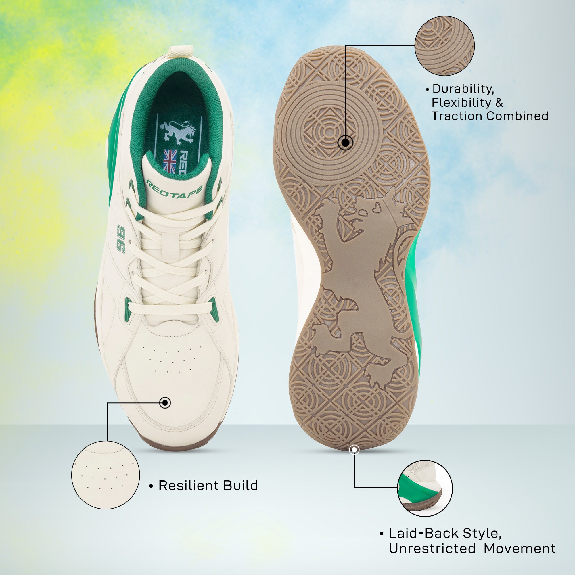 Experience comfort and versatility with Red Tape Men's Lifestyle Basketball Shoes, crafted for those who appreciate everyday style with lasting comfort. The PU upper offers a sleek and refined finish, while the EVA + TPU + TPR sole ensures lightweight flexibility, durability, and grip on every surface. Designed with a Classic Footbed featuring High-Density Foam, these basketball sports inspired shoes deliver superior cushioning for prolonged wear. The low-cut design and lace-up closure make them perfect for daily outings, travel, or smart-casual looks.