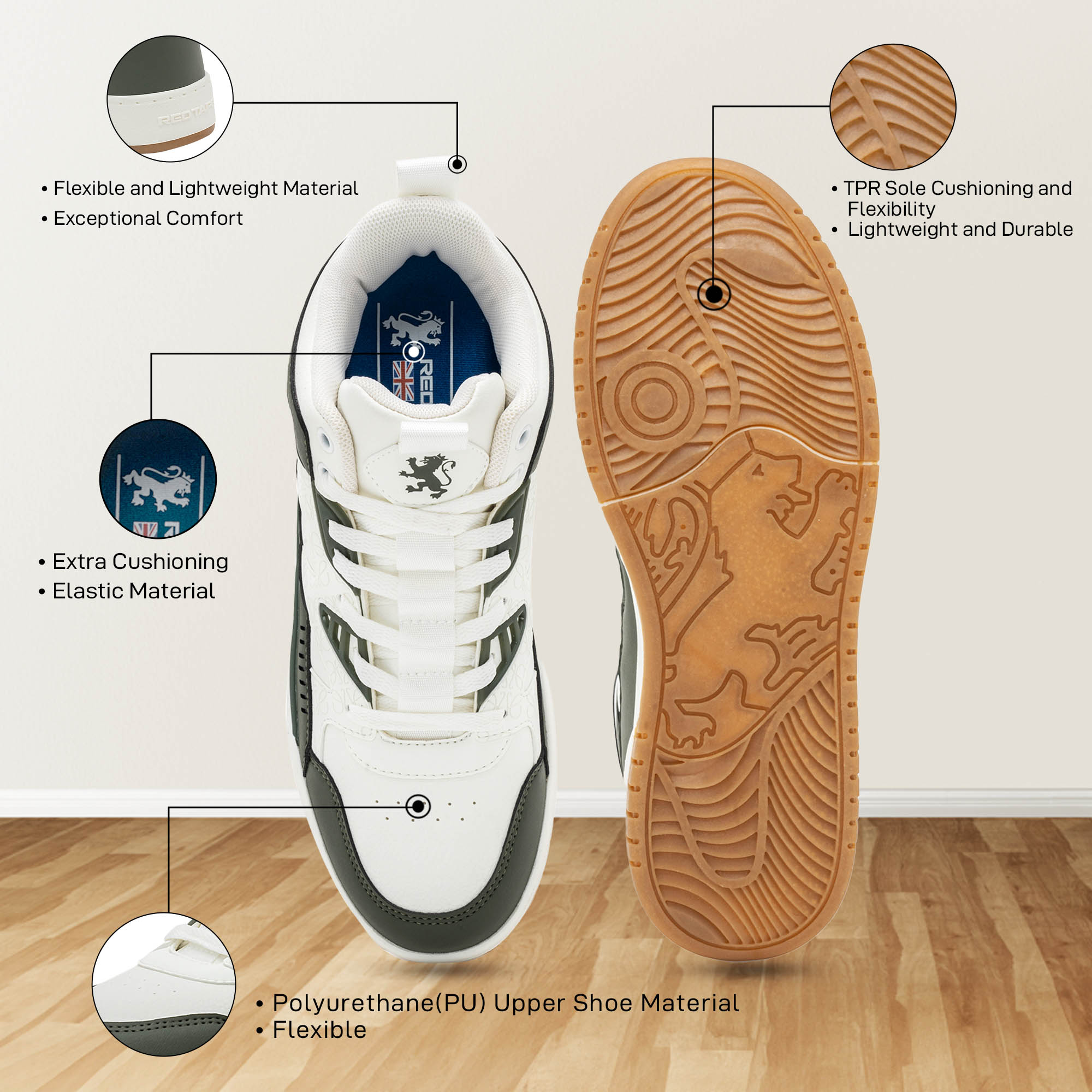 Step up your casual fashion with Red Tape Men's Lifestyle High-Top Sneakers, crafted for effortless style and long-lasting comfort. Designed with a premium PU upper and a durable TPR sole, these sneakers combine a sleek look with dependable support. The Classic Footbed with High-Density Foam ensures superior cushioning and comfort with every step, while the high-top silhouette and lace-up closure add a bold, street-ready vibe - perfect for casual outings, weekend plans, or travel.