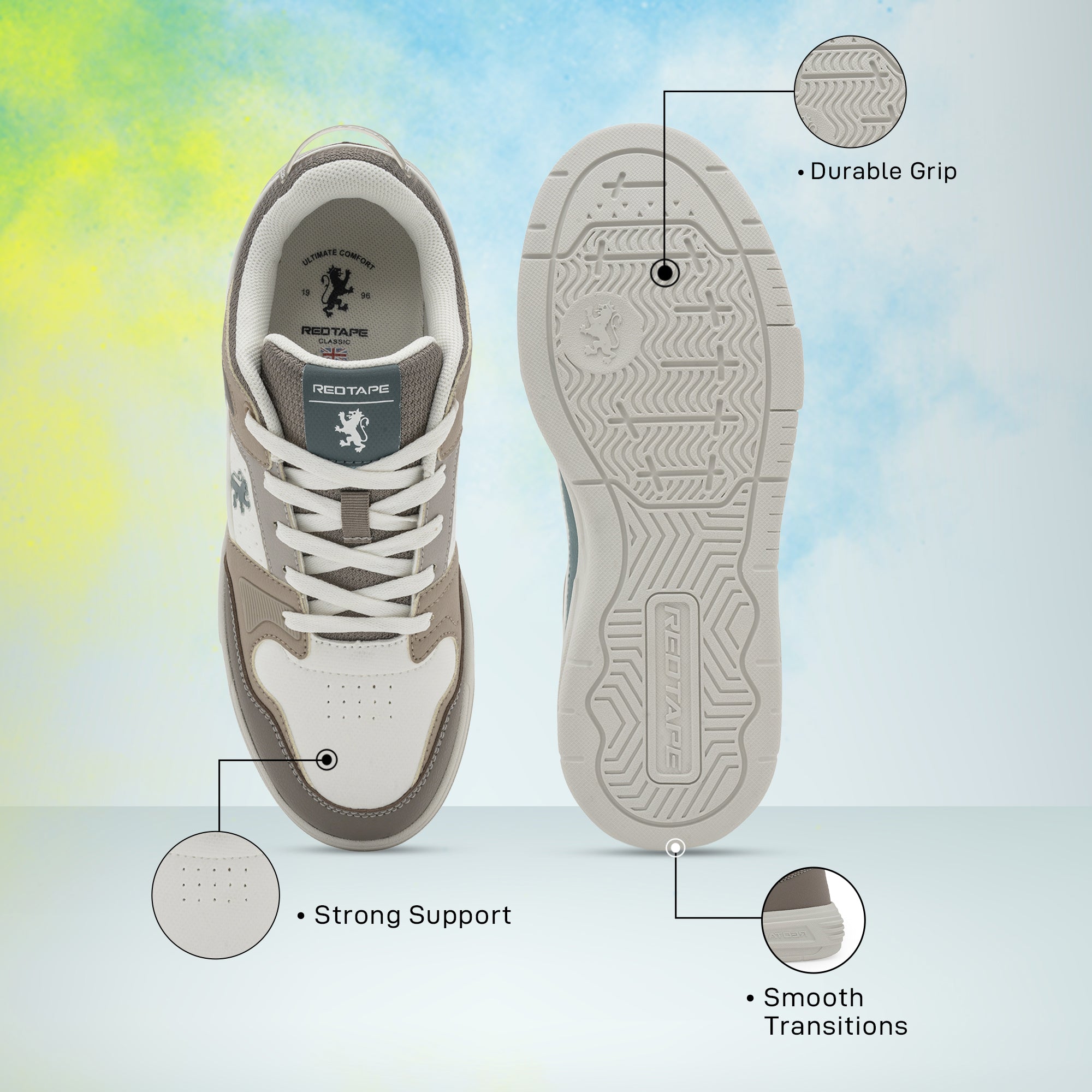 Step up your everyday look with Red Tape Lifestyle Sneakers for Men, crafted for a perfect mix of modern design and reliable comfort. Featuring a premium PU upper for durability and sleek appeal, along with a soft mesh lining that keeps your feet cool and fresh throughout the day. The EVA sole ensures lightweight cushioning and flexibility, while the Classic Footbed with High-Density Foam adds plush comfort and support for all-day wear. Perfect for casual outings, weekend adventures, or daily commutes - these sneakers are your go-to for effortless versatility.