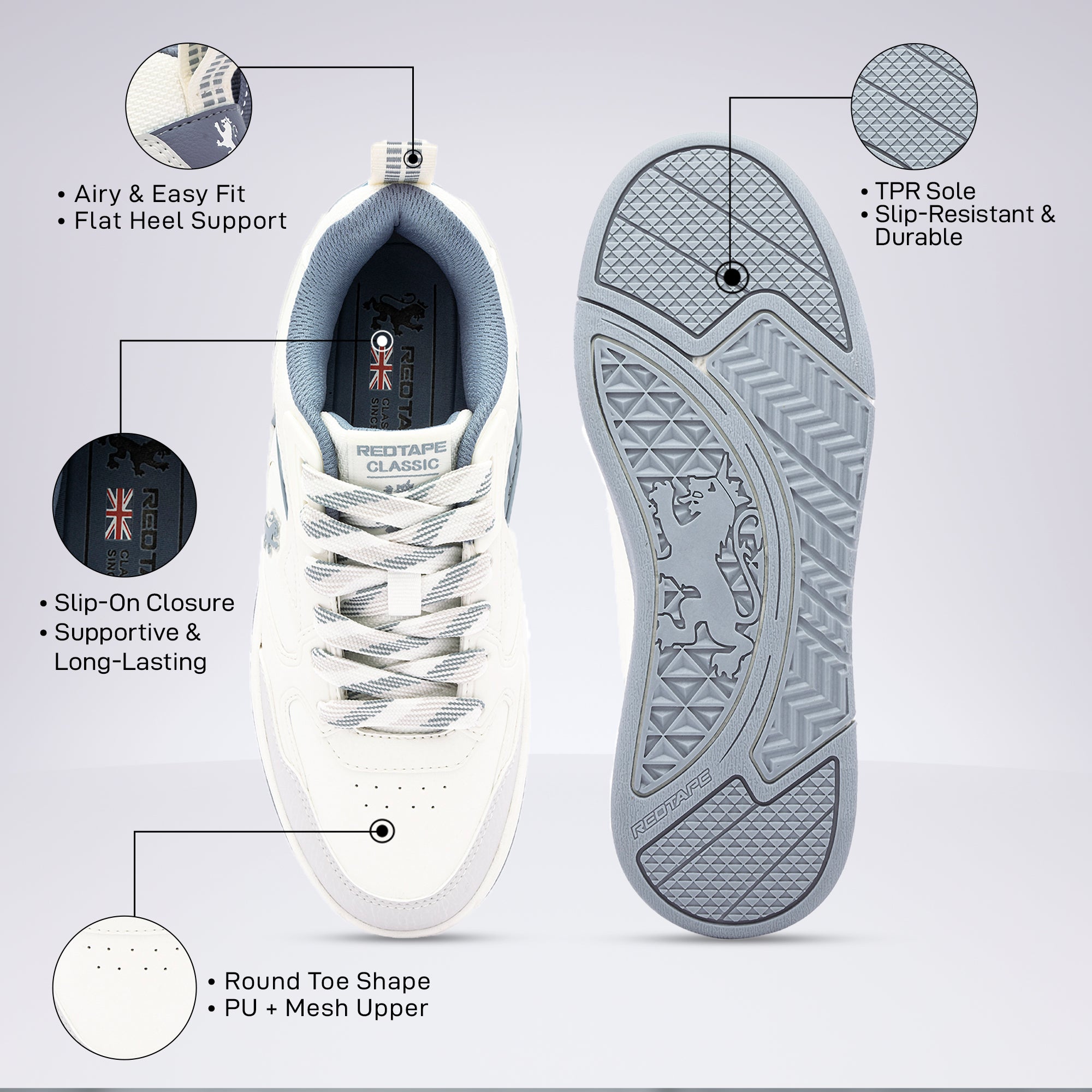 Red Tape Women's Lifestyle Sneakers bring together sleek design and lasting comfort for your everyday look. Crafted with a PU + Mesh upper, these sneakers offer a perfect balance of durability and breathability. The TPR sole ensures flexibility and grip for confident steps, while the Classic Footbed with High-Density Foam delivers cushioned comfort that supports your feet all day long. Perfect for daily wear, travel, or casual outings, these sneakers keep your style elevated and your comfort uncompromised.