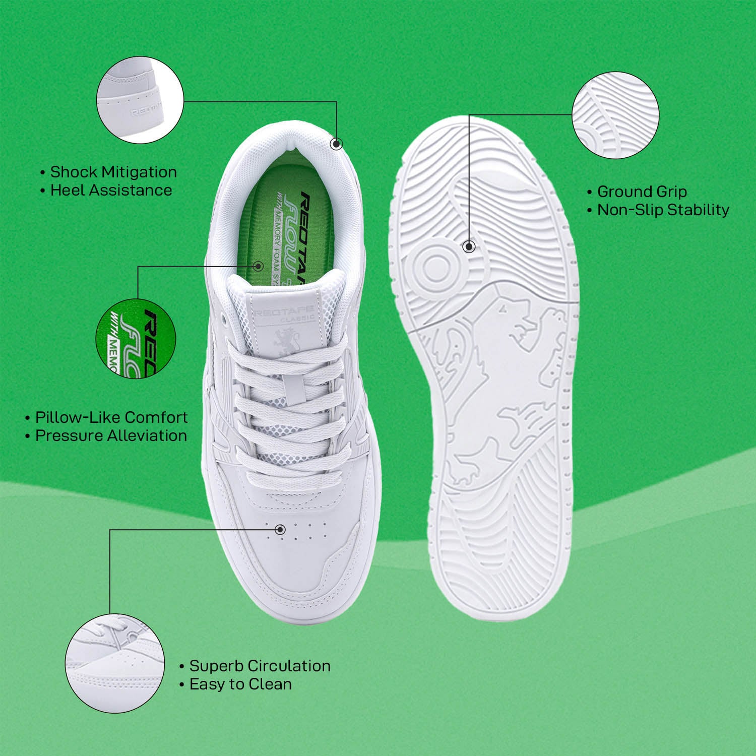 Enhance your Stylish Outfits with our White Casual Shoes for Men brought to you by Red Tape. TPR Bed Sole gives you All Day Comfort and Relaxation. The PU Upper gives a Casual Chic Look. The Casual Look gets more Enhanced with its Round Shape Toe.