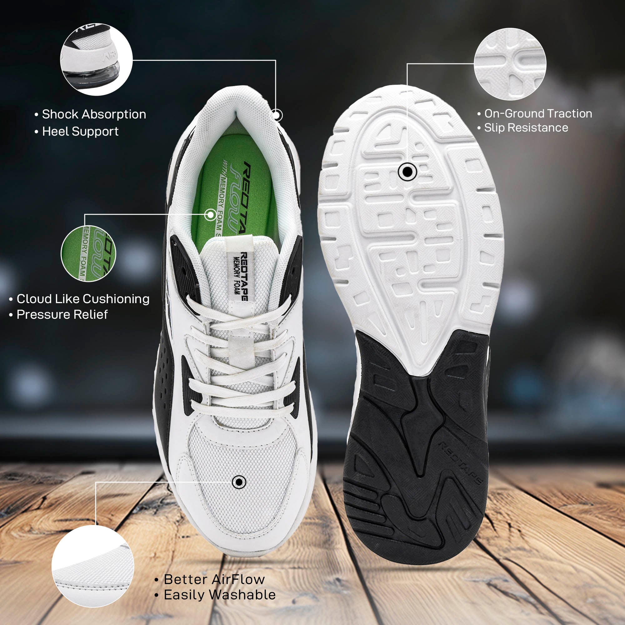 Enhance Your Casual Look game With These White/Black Color Lace-Up Closure Sneaker Shoes Brought To You By Red Tape. EVA+TPR+TPU bed Sole Gives You All-Day Comfort And Relaxation At Your Feet And The MESH+PU (Polyurethane) Upper Gives You A Great Look With A Cool Experience. The Casual Looks Cooler With The Round Shape Of the Toe.