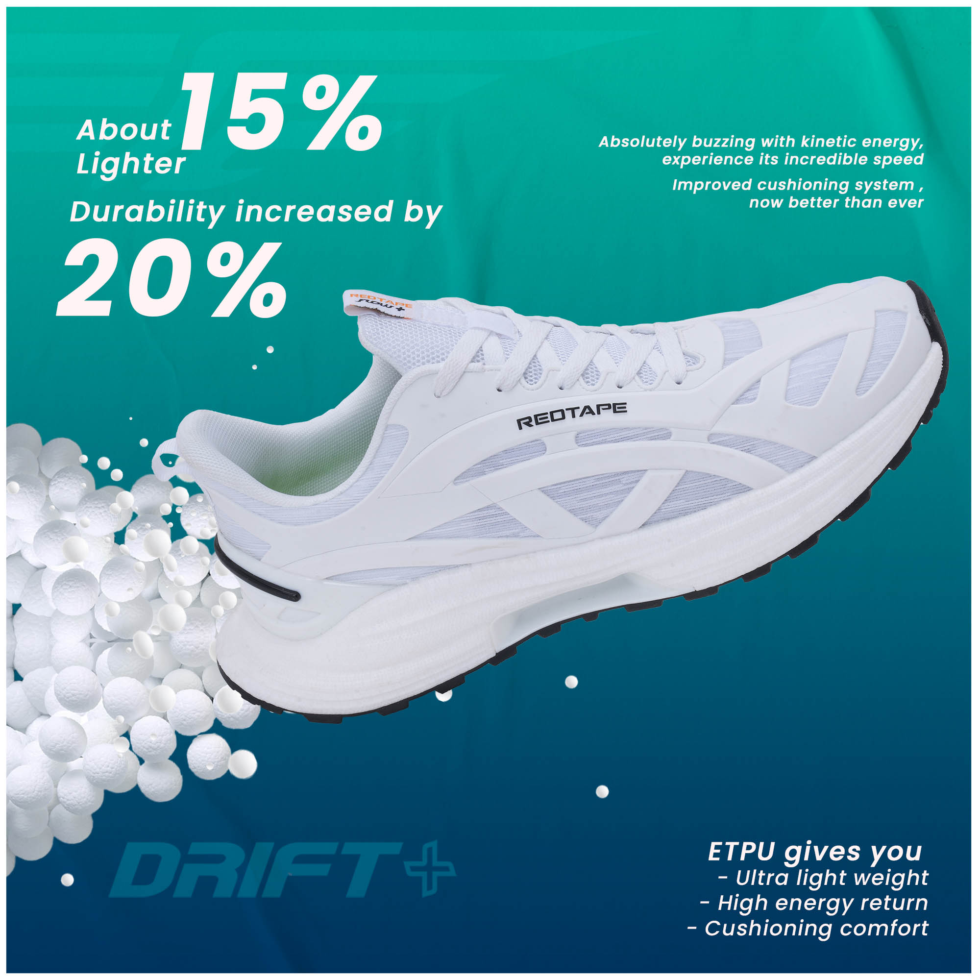 Upgrade Your Everyday Look with Red Tape's White Lace-Up Walking Shoes! Let your feet relax for hours on end on the ETPU+TPU+TPR Sole, while Mesh Upper gives you a cool look as you flaunt around the round toes. Make casual look cooler with Red Tape!