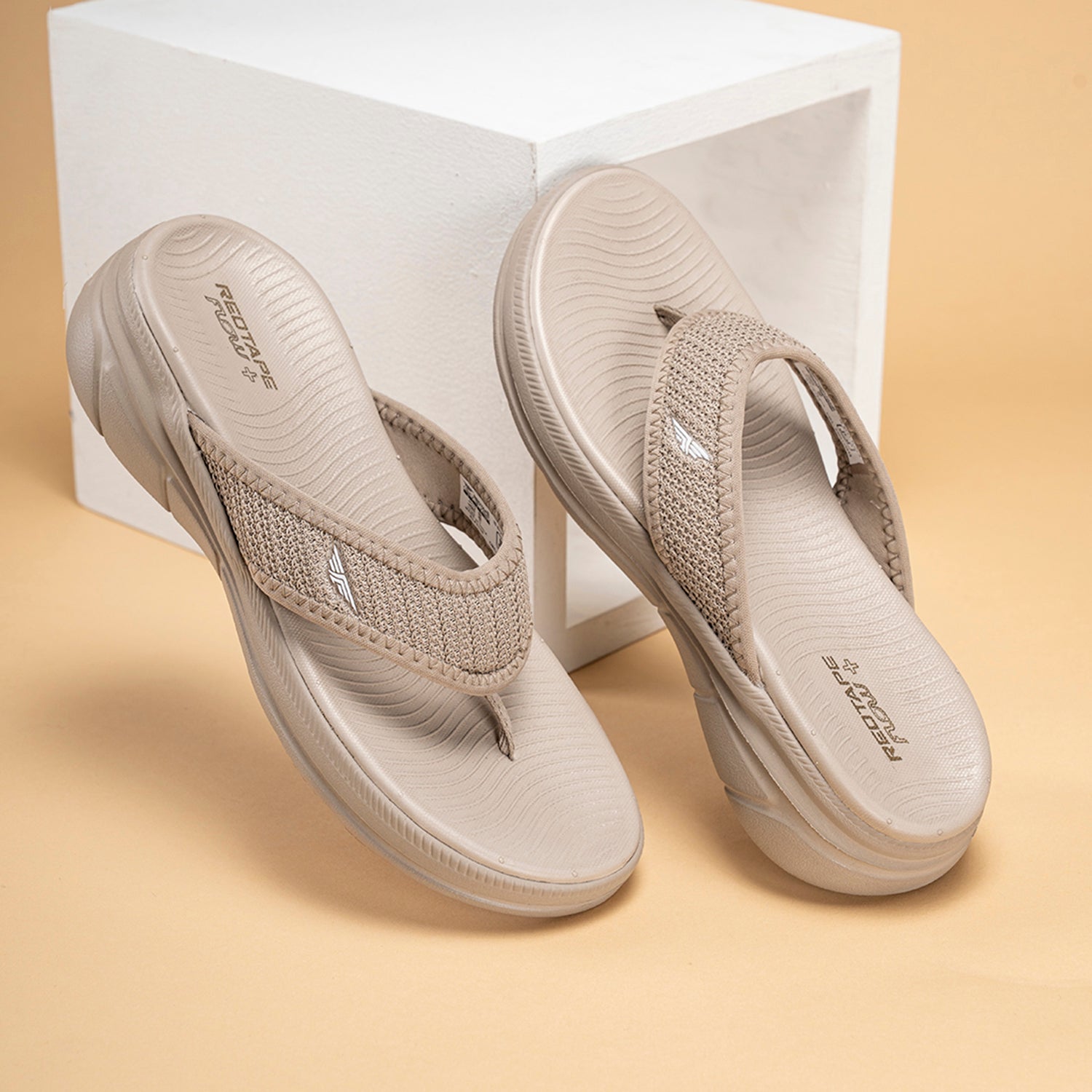 Step into everyday ease with Red Tape Beige Sport Sandals for Women - designed for effortless comfort and breathable style. Crafted with a soft knitted textile upper and fabric lining, these sliders provide a flexible, snug fit for all-day wear. The lightweight EVA sole offers cushioning and grip, while the slip-on thong design ensures convenience and relaxed movement - perfect for casual outings, lounging, or summer strolls.