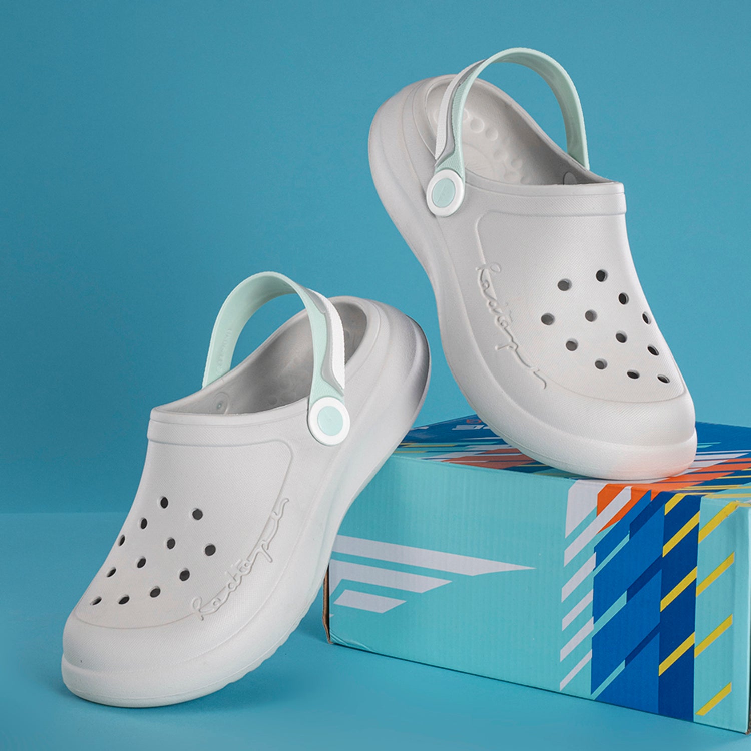 • Benefits: Easy to wear, cushioned comfort, and waterproof EVA build
