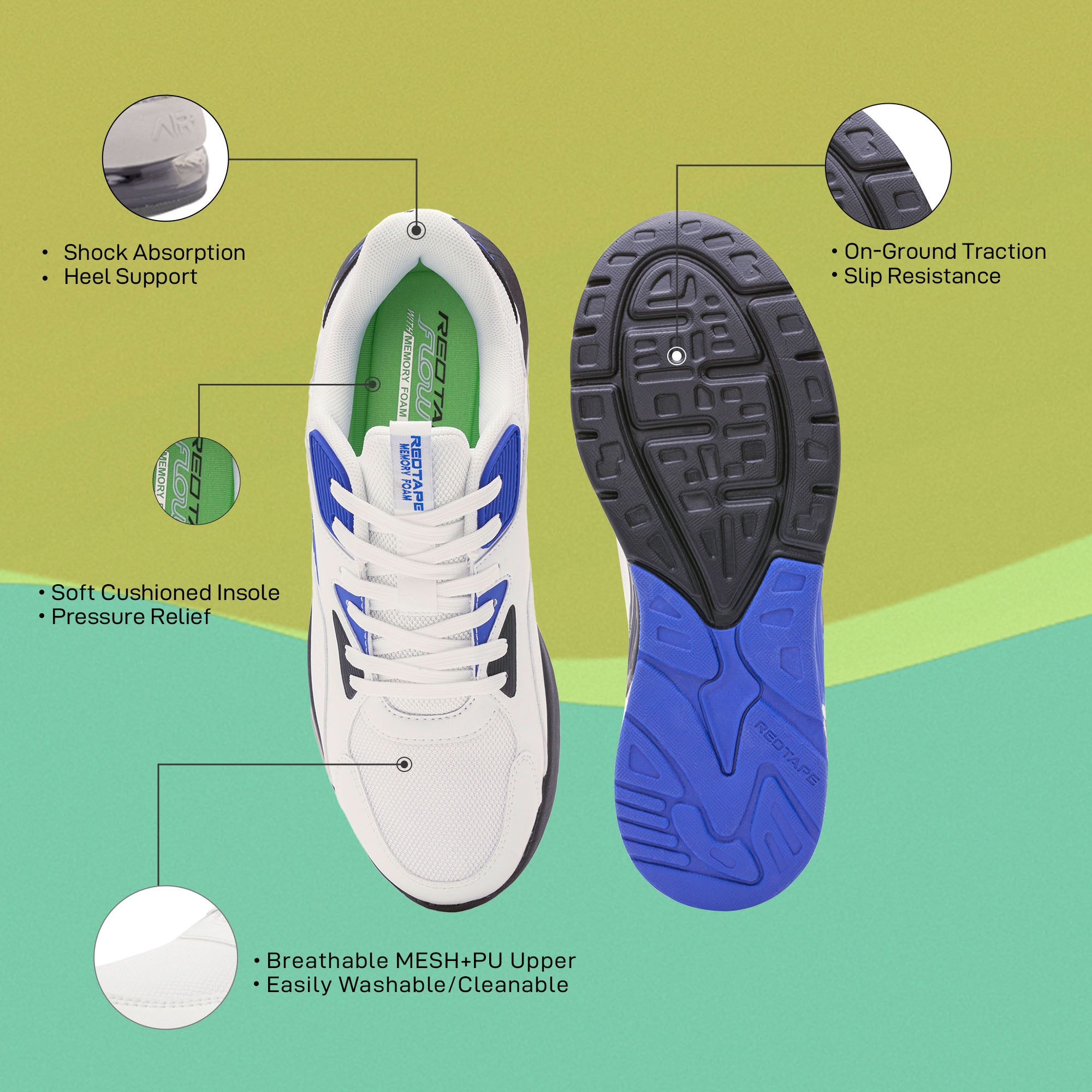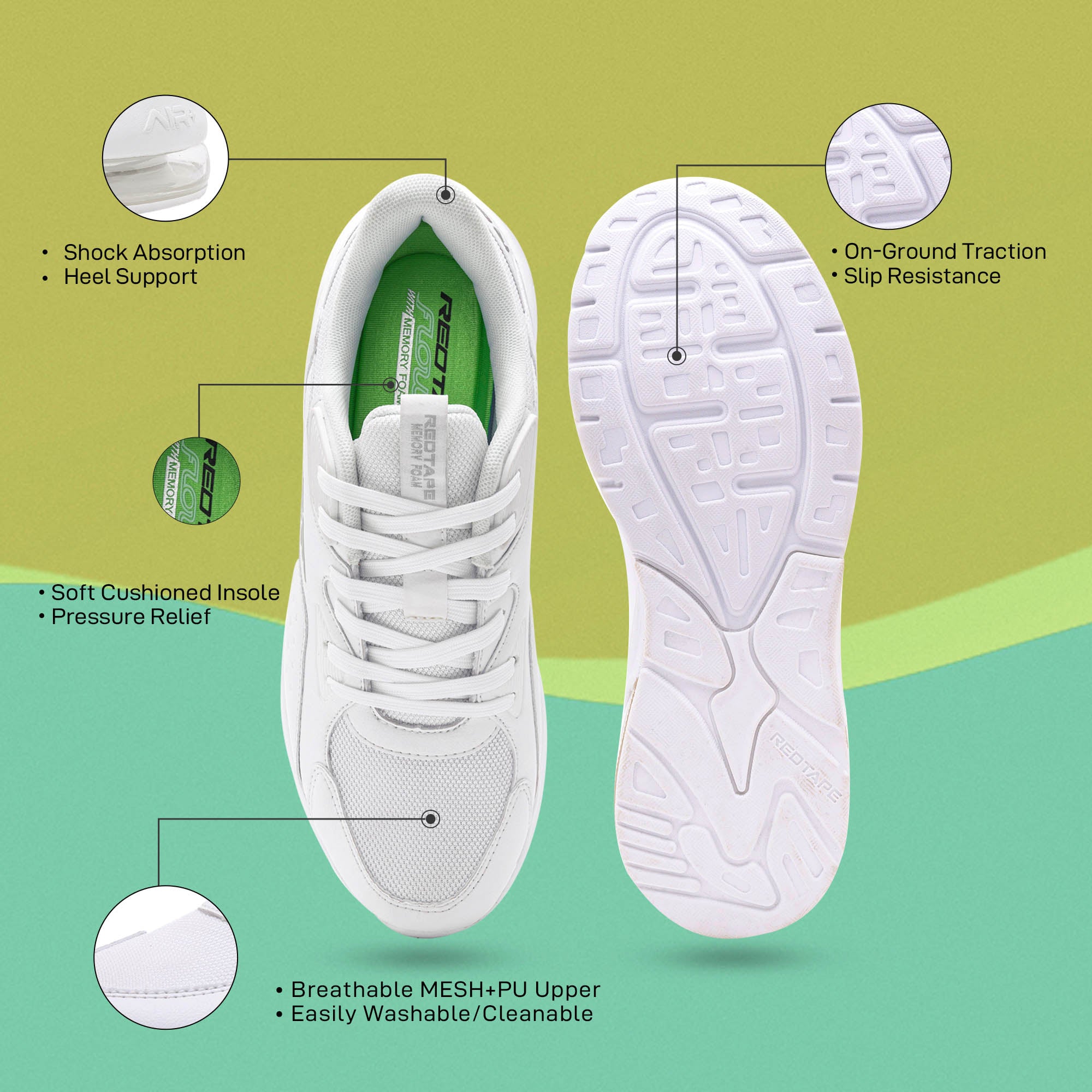 Enhance Your Casual Look game With These White Color Lace-Up Closure Sneaker Shoes Brought To You By Red Tape. EVA + TPR + TPU Bed Sole Gives You All-Day Comfort And Relaxation At Your Feet And The MESH+PU (Polyurethane) Upper Gives You A Great Look With A Cool Experience. The Casual Looks Cooler With The Round Shape Of the Toe.